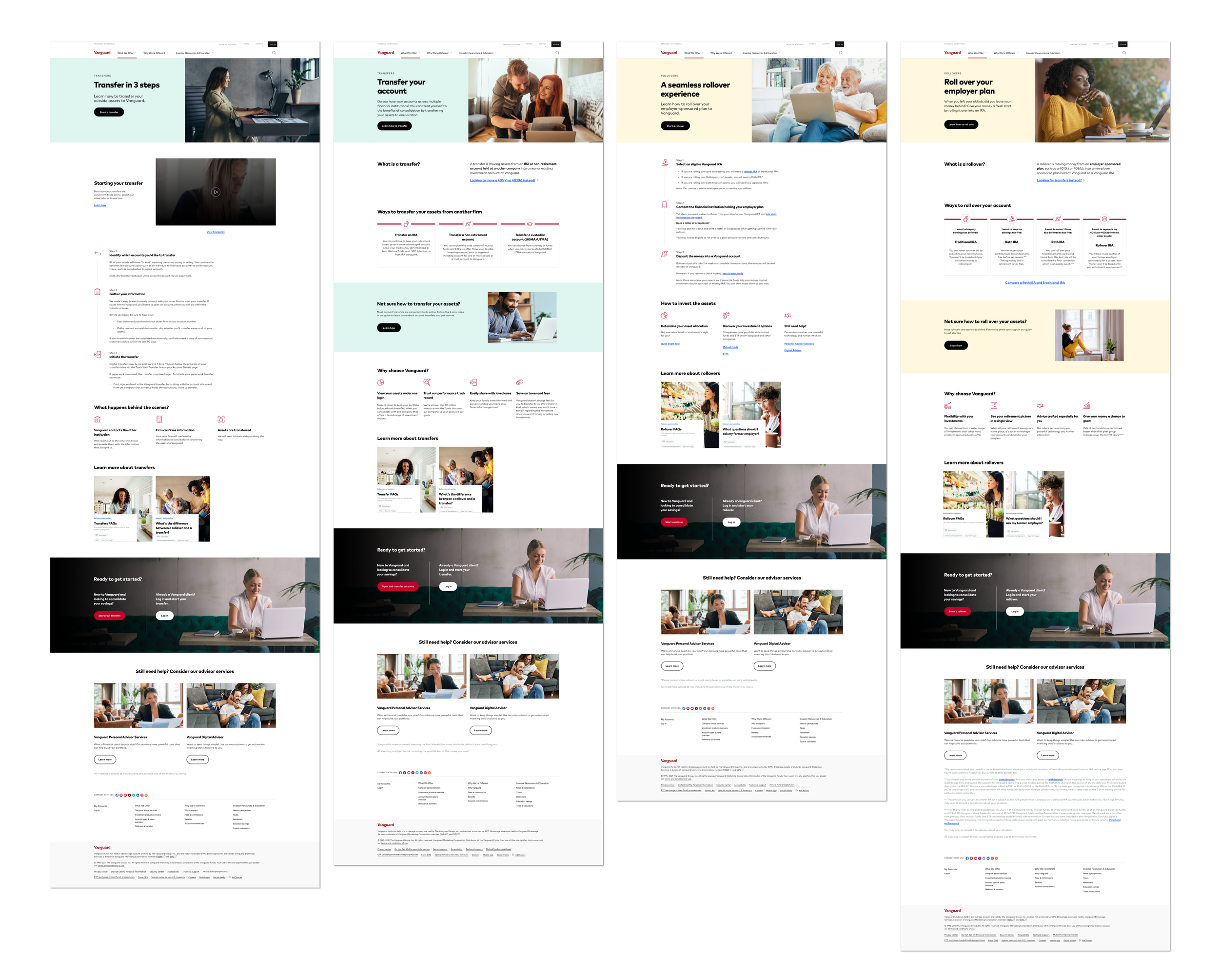 I collaborated with a strategist and a copywriter to develop an improved structure for these pages. Then, I adapted elements of our design component library to build pages with better hierarchy. The final suite of pages are estimated to save Vanguard millions of dollars each year in reduced call center costs.